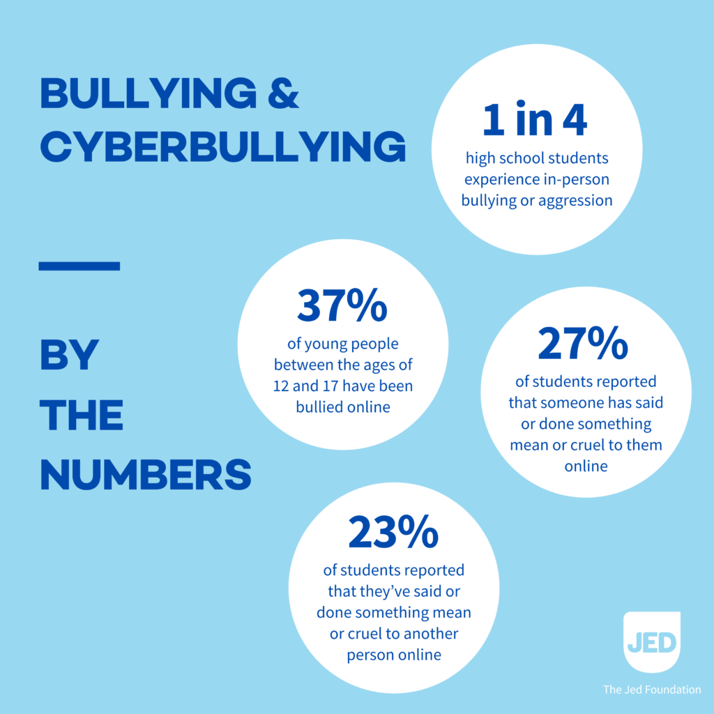 Bullying is unfortunately quite common, especially online. The 2019 Youth Risk Behavior Survey¹ found that nearly 1 in 4 high school students experience in-person bullying or aggression; this is significantly higher for girls and for LGBTQ+ students and students questioning their sexual identity.